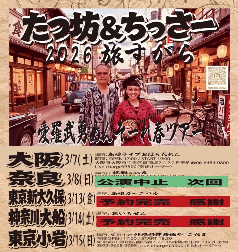 🎎3/15(日) たつ坊&ちっさー 2026旅すがら 愛羅武勇めんせーれ春ツアー